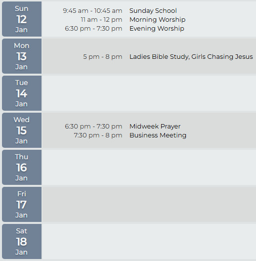 Get a calendar from the foyer rack to keep up with all the church events.