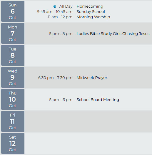 Get a calendar from the foyer rack to keep up with all the church events.