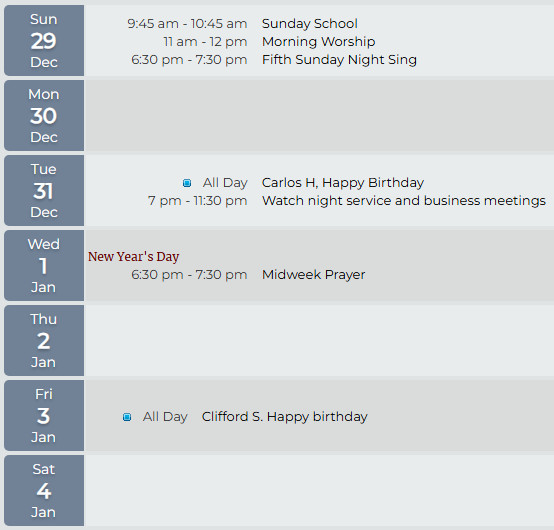 Get a calendar from the foyer rack to keep up with all the church events.