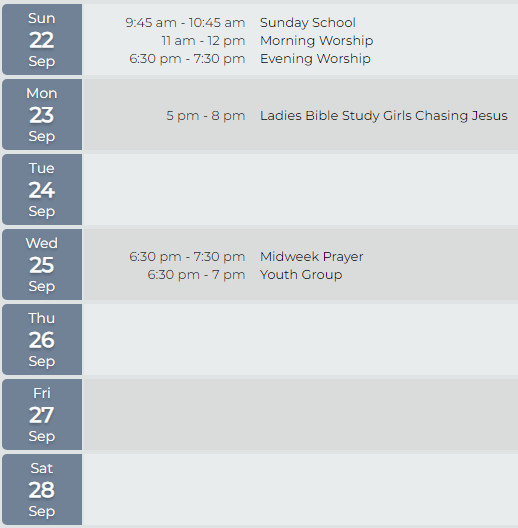 Sunday school classes for every age group begin on Sundays at 9:45am.
